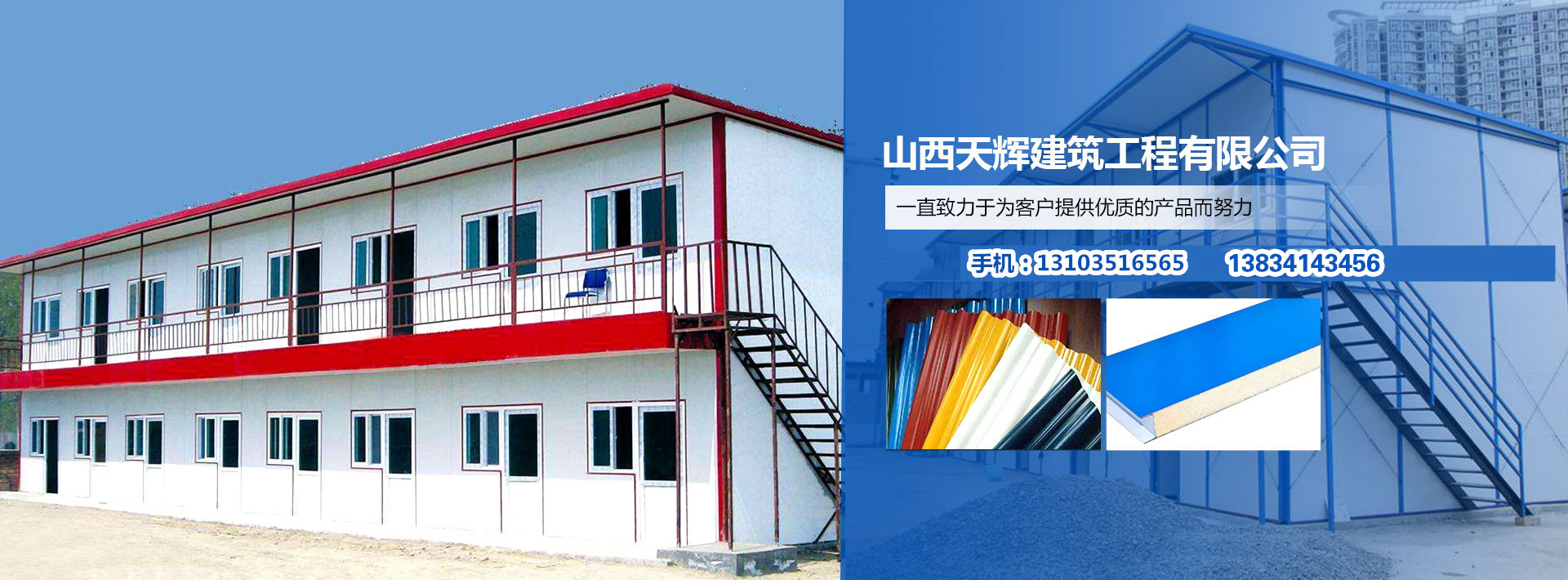 山西天輝建筑工程有限公司是專業從事彩鋼板生產,鋼結構、住人集裝箱、活動房設計和專業安裝、維護的一家企業,我們銷售的產品引進全自動彩鋼夾芯板流水線以銷售多種規格的彩鋼復合夾芯板...